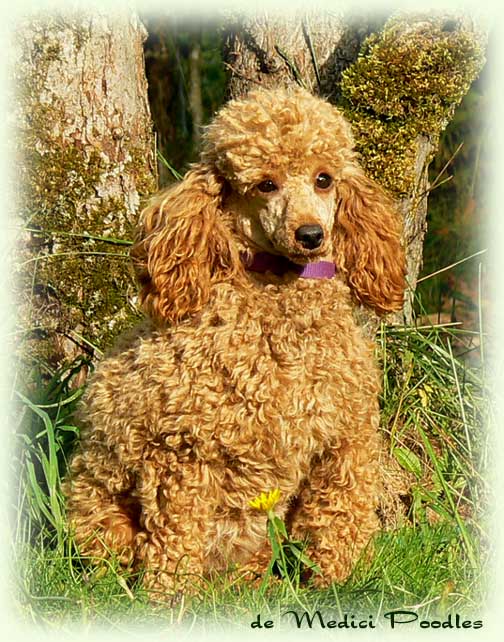 Ginger is a smart, sensitive little girl who knows that the best place in the house is on a lap! She's a mid sized mini girl around 12 inches at the shoulder. Very nicely put together and a real sweetheart! Chili is a handsome apricot boy with outstanding temperament and structure. He's quite the charmer and is a really cuddly boy with his family. We should see red and apricot puppies from their pairing together, likely full sized minis and oversize minis/moyens. If you are interested in having a puppy from this litter, you are welcome to fill out our puppy form and contact us. |